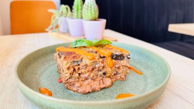 vinete, linte verde, ciuperci champignon, tofu, nucă, roşii, ovăz fără gluten, ceapă, apio, usturoi, condimente naturale, sare de mare neiodată, fără gluten